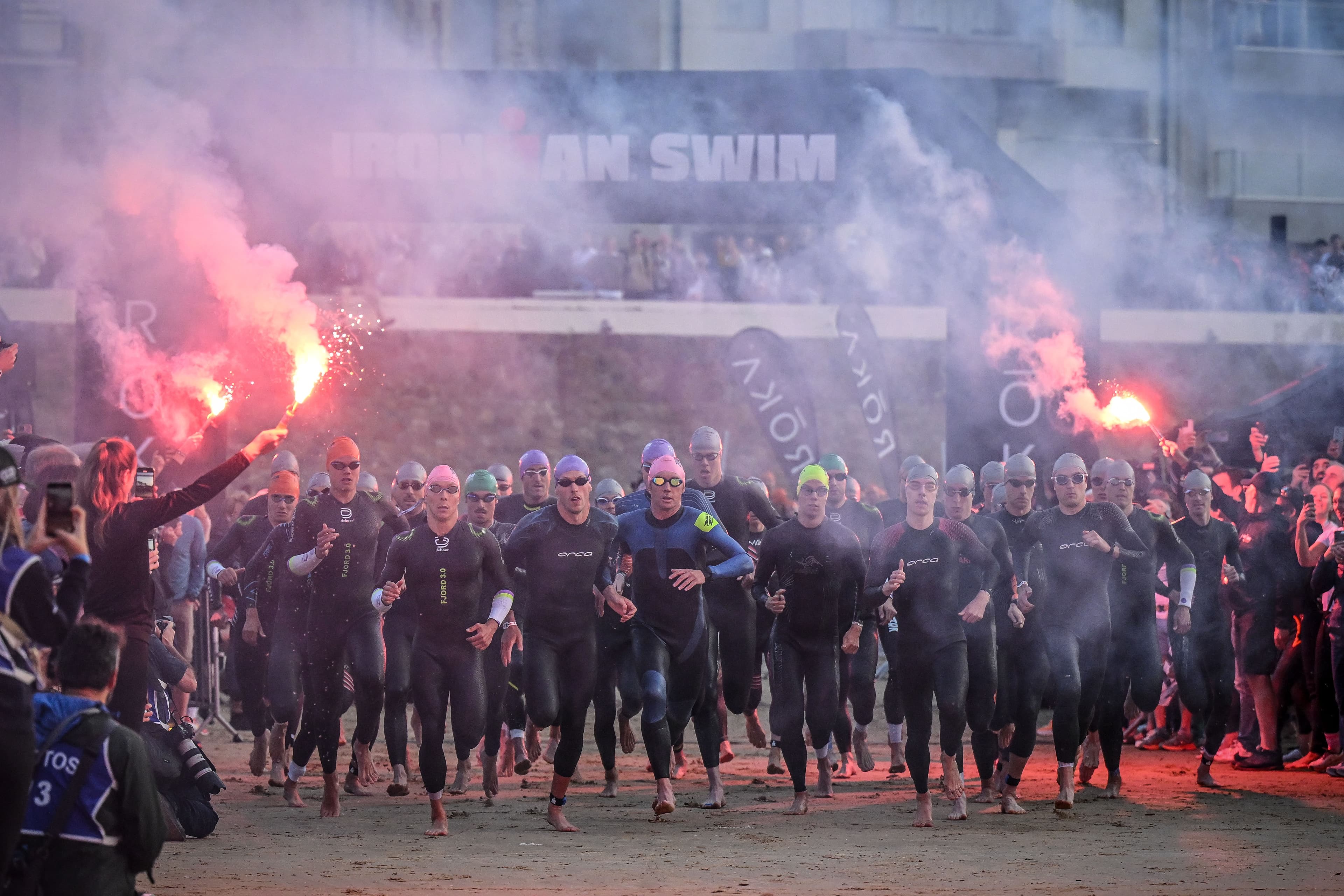 The 1.9km swim is a unique point-to-point journey that begins at the Grande Plage. Athletes enter the Atlantic Ocean for a short 300-meter segment before making a sharp turn into the "Chenal du Vendée Globe"—the very channel used by world-class yachts. The water is saltwater, typically ranging between 18°C and 20°C (64-68°F), making it a standard wetsuit-legal affair.