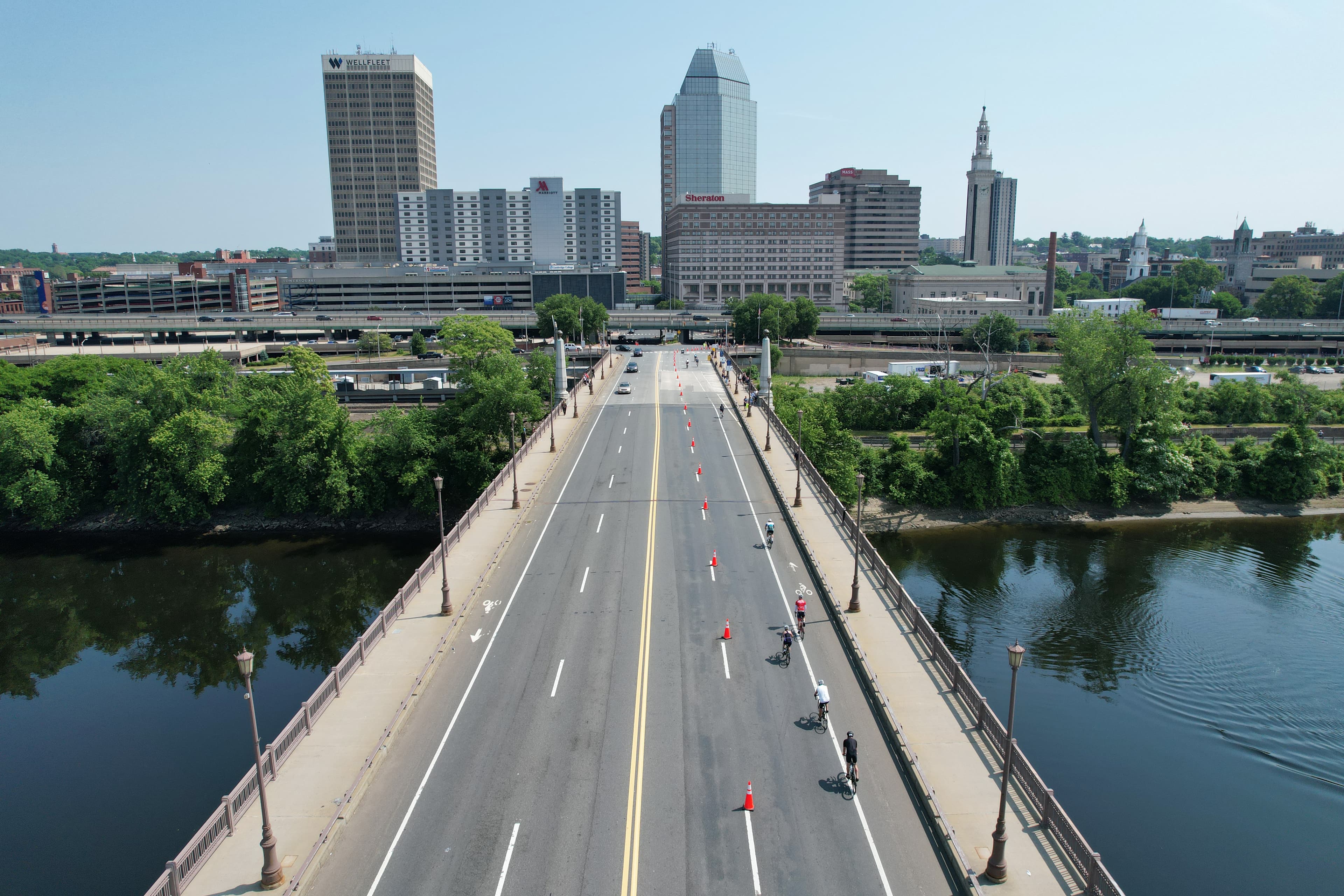 The 1.2-mile swim is a point-to-point route in the Connecticut River. Athletes are shuttled to the North End Bridge and swim downstream to the transition area at Riverfront Park. Because of the consistent downstream current, this is frequently cited as one of the fastest swims in the IRONMAN 70.3 series, with finishing times often 5 to 10 minutes faster than typical lake swims. Water temperatures historically fluctuate between 66°F and 71°F, making the event reliably wetsuit-legal.