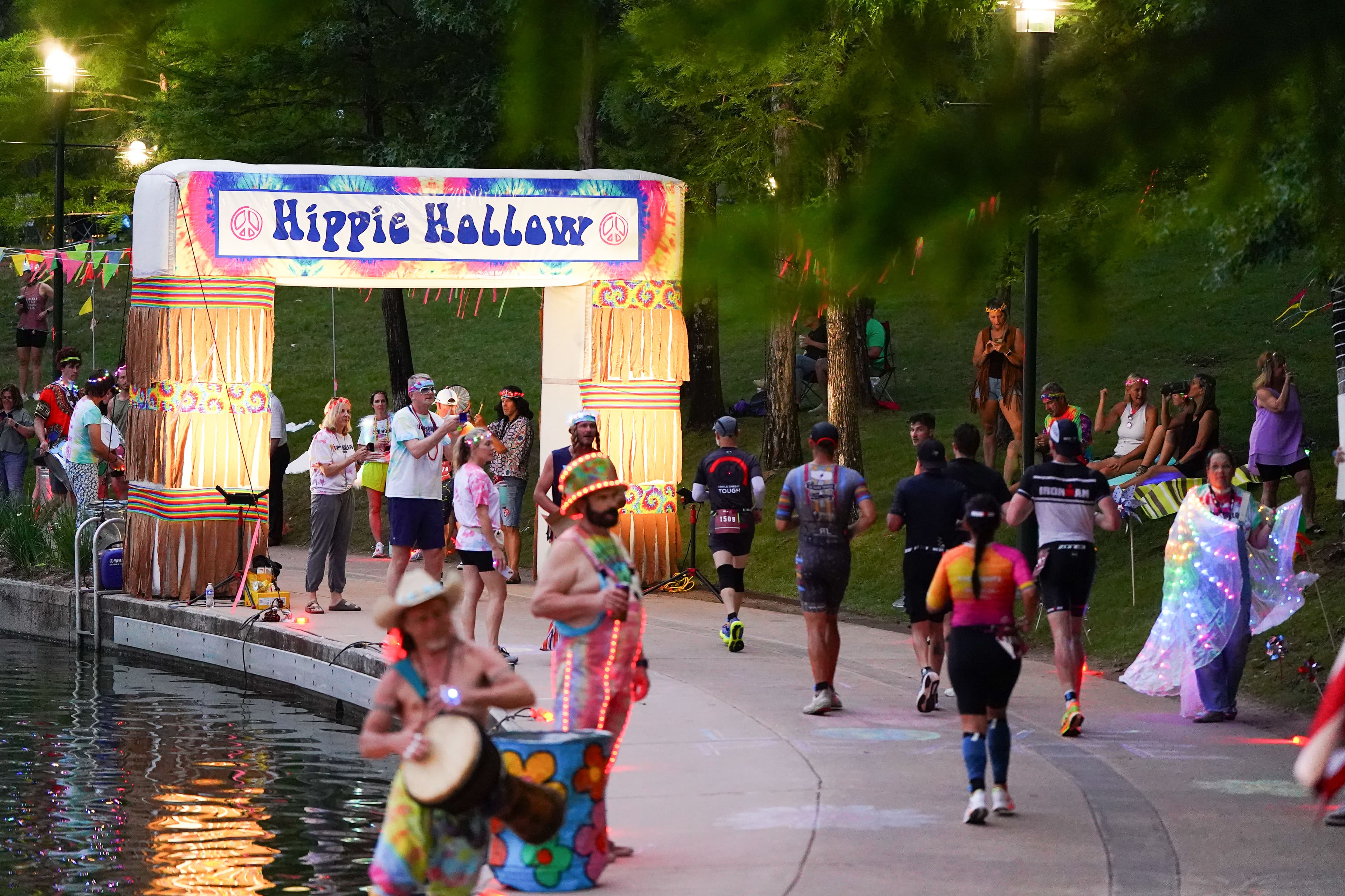 The marathon is a three-loop, 26.2-mile course that winds through the heart of The Woodlands. It is remarkably flat, with only 350–450 feet of gain, and takes runners along the scenic Woodlands Waterway and through "Hippie Hollow," a high-energy, spectator-heavy section. The surface is a mix of asphalt and concrete.